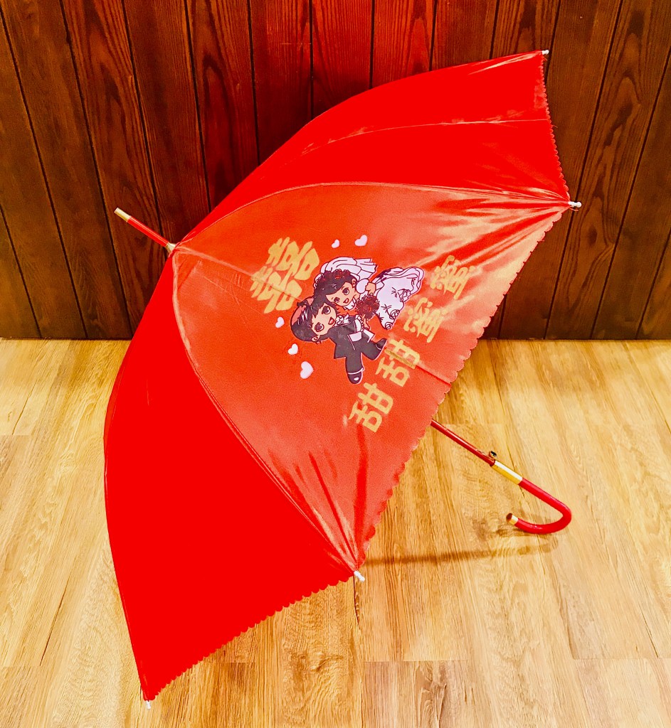 结婚当天,新娘的父亲要用全新的红色新娘伞遮新娘出门,有挡煞的作用。