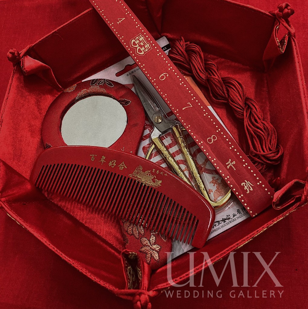 Step 3. 吉时到:父母/好命人边帮新郎新娘梳头 (由头梳到尾)